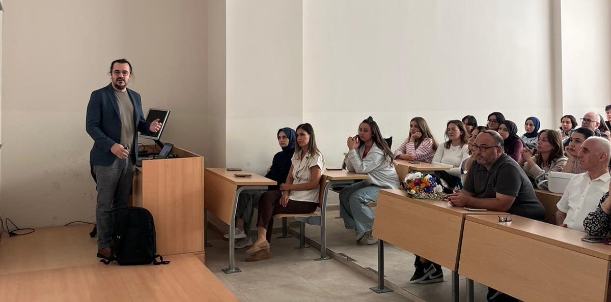 Program sonunda, bölüm öğretim üyelerimiz tarafından Dr. Yavuz Emre Yağcı’ya katkılarından dolayı teşekkür edilerek günün anısına çiçek takdim edildi.