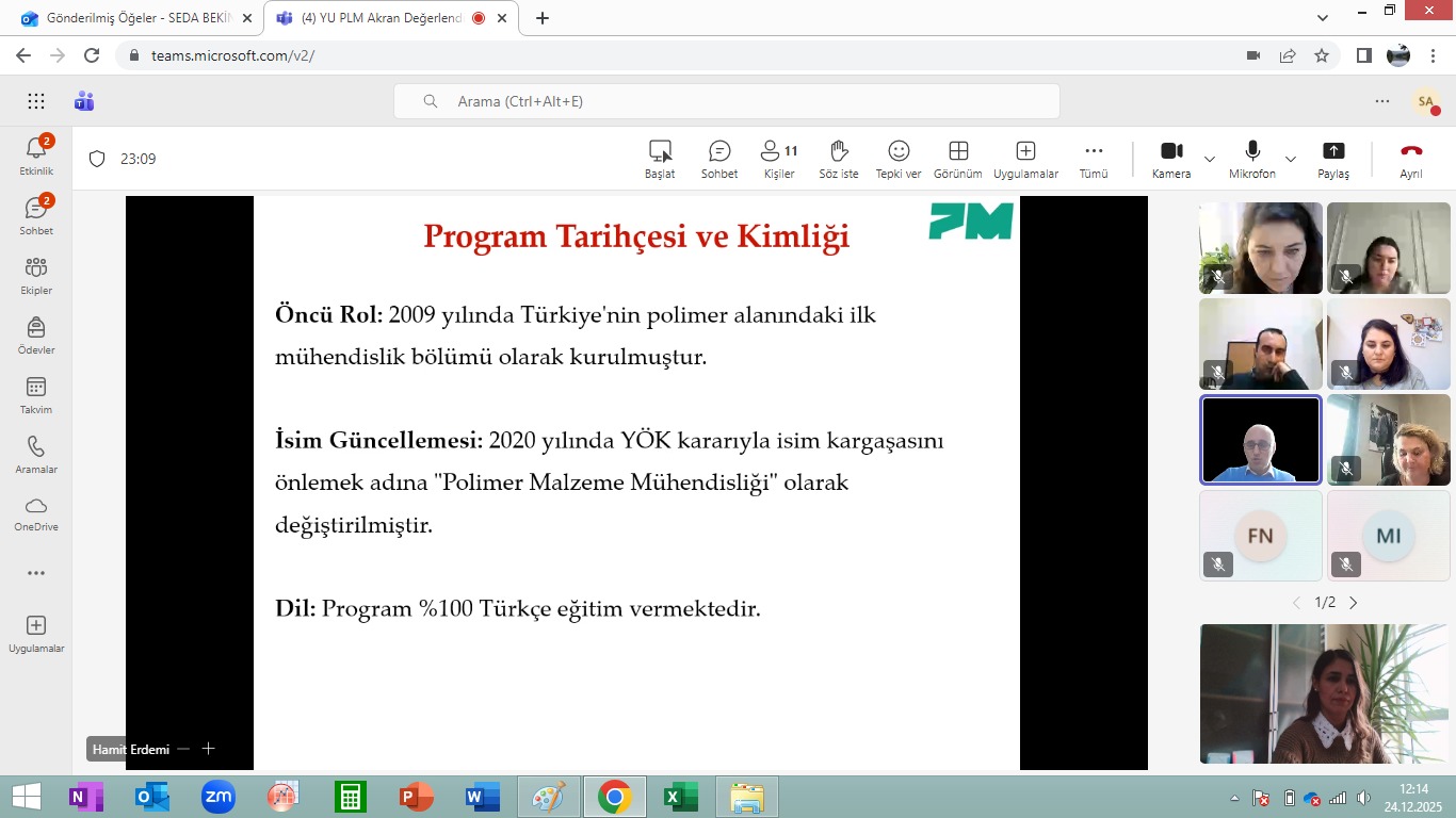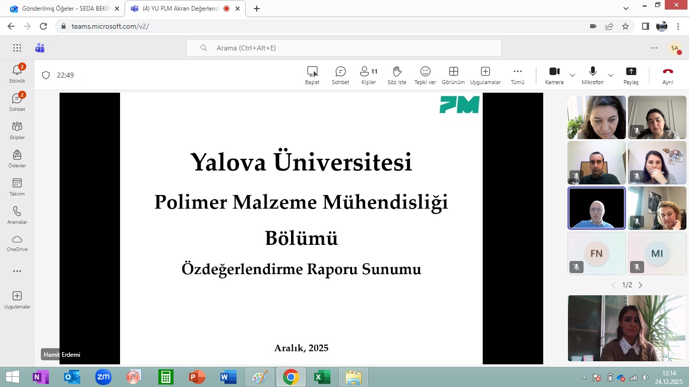 Yalova Üniversitesi Polimer Malzeme Mühendisliği Bölümü, eğitim kalitesini artırma ve akreditasyon süreçleri hazırlıkları kapsamında 24 Aralık 2025 tarihinde saat 12.00’de çevrimiçi olarak düzenlenen "Akran Değerlendirme Toplantısı", akademik kadromuz ve dış paydaşlarımızın katılımıyla başarıyla tamamlandı.