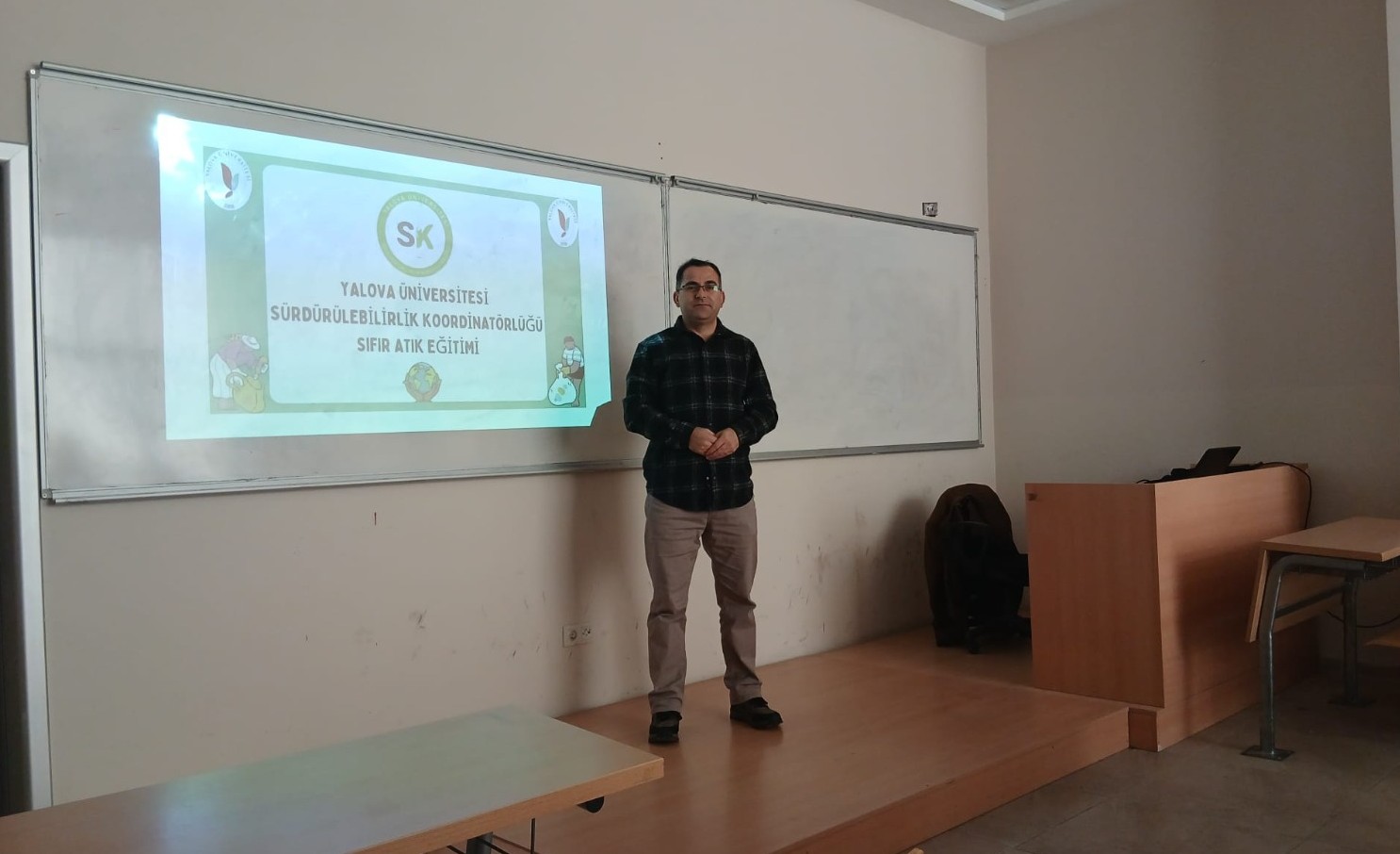 12 Aralık Cuma günü saat 11.00’de gerçekleştirilen eğitim, Bölüm Sürdürülebilirlik Koordinatörlüğünden Doç. Dr. Mehmet Arslan tarafından, daha önce bu eğitimi almamış lisans öğrencilerine yönelik olarak verilmiştir. Eğitimde Sıfır Atık, Kimyasal Atık ve Elektronik Atık konularında temel bilgiler paylaşılmıştır.